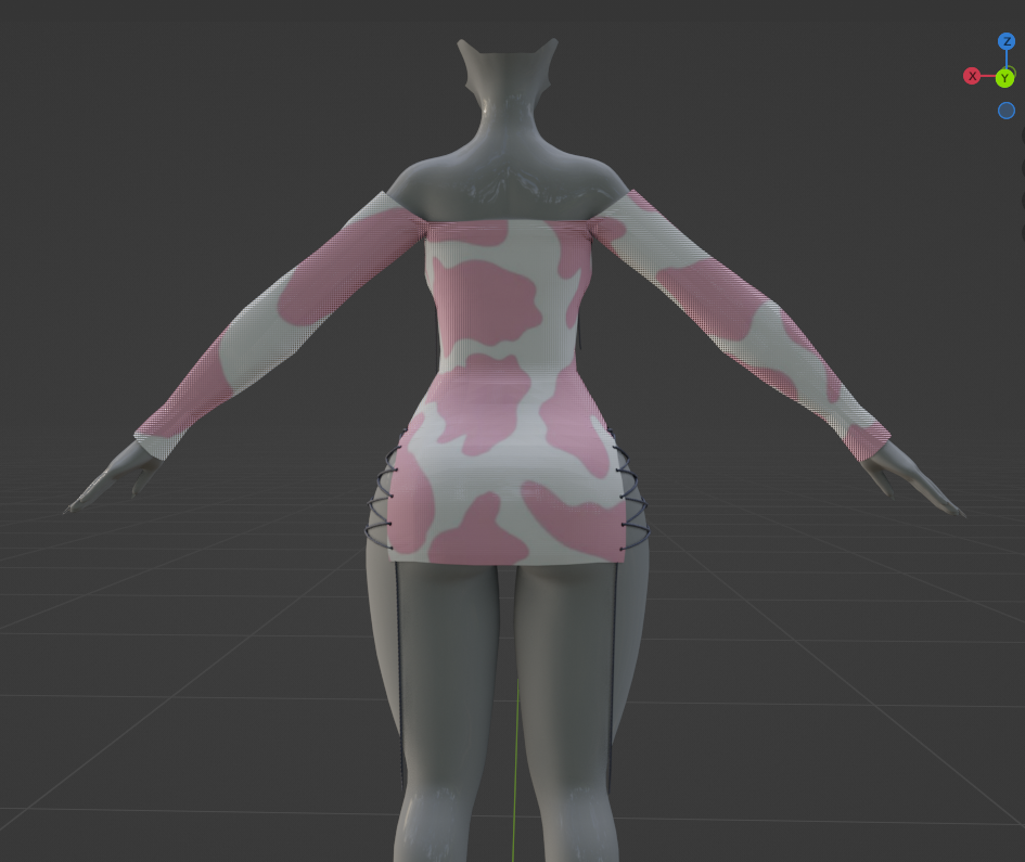 Its Based on the Panda base and you get both short sleeved and long sleeved dress! as well as some textures and Matcaps that is for the cow print!